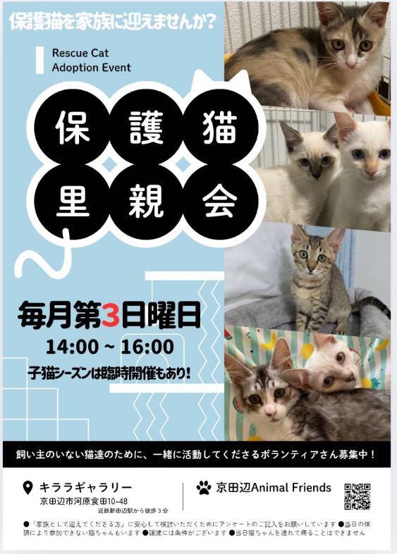 保護猫 里親会(譲渡会)を開催しています- 毎月第3日曜日 14:00 ~ 16:00